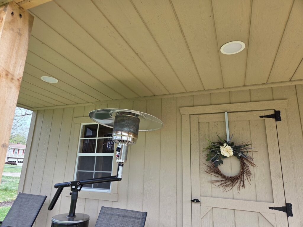 That included installing outlets, LED light strips along the inside of the shed and ceiling lighting on the shed’s outside porch. From start to finish, the project was completed within one day.